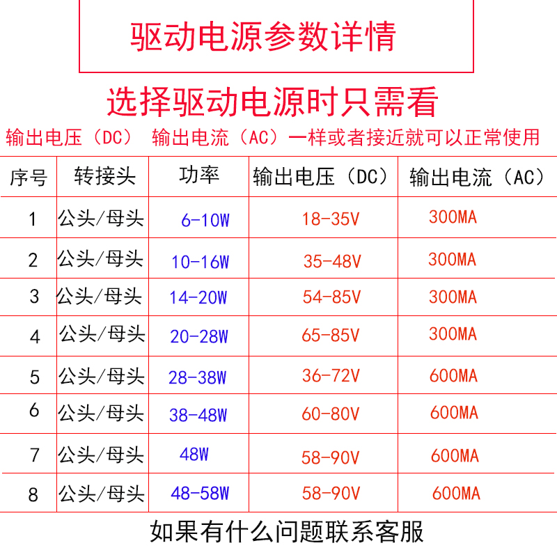 6-10w male head 300mA6-10w female head 300mA10-16w male head 300mA10-16w male head 30 300mA14-20w male head 30