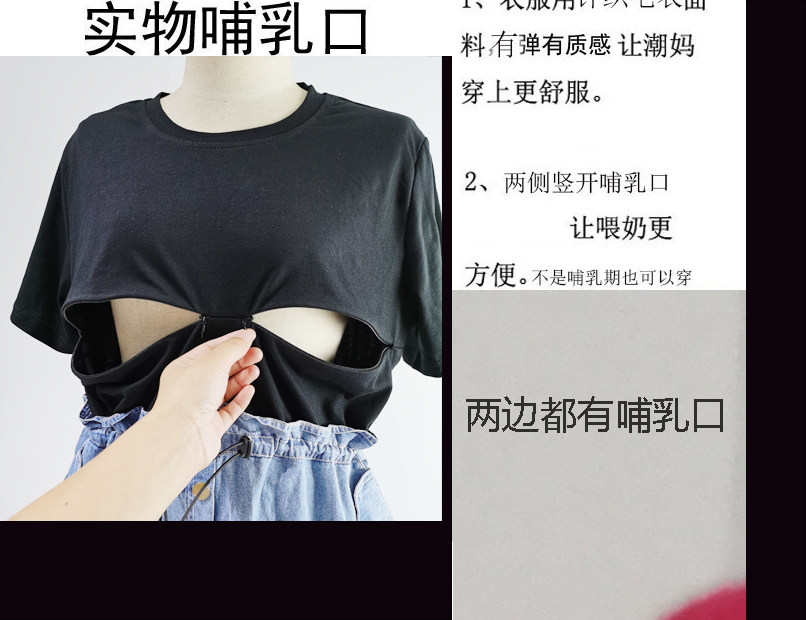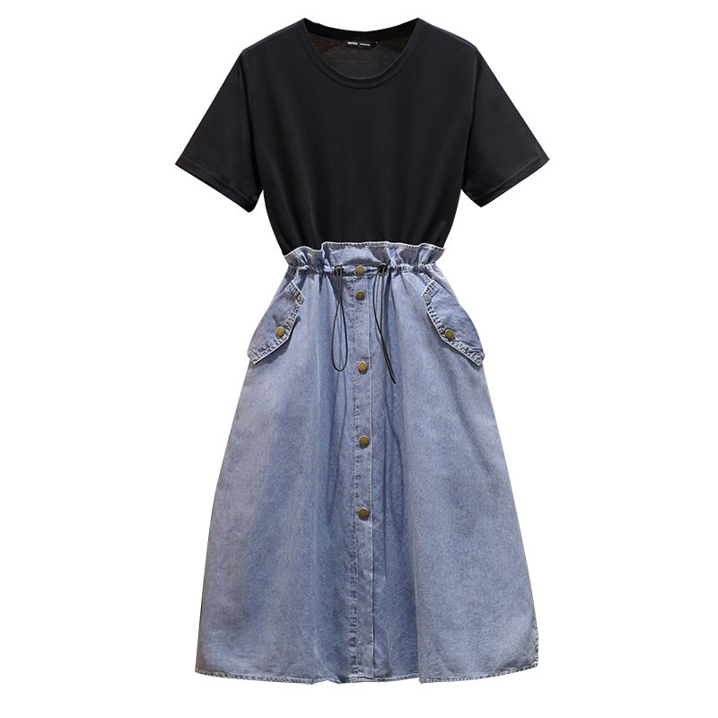 Large Size Lactation Breastfeeding Out Fashion Summer Minus Age Cover Waist Display Slim Splicing Short Sleeve Denim Laced Ocean Dress