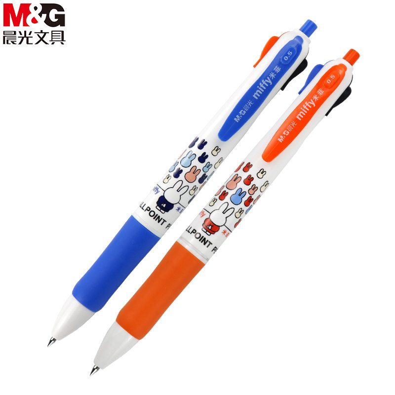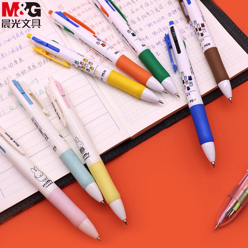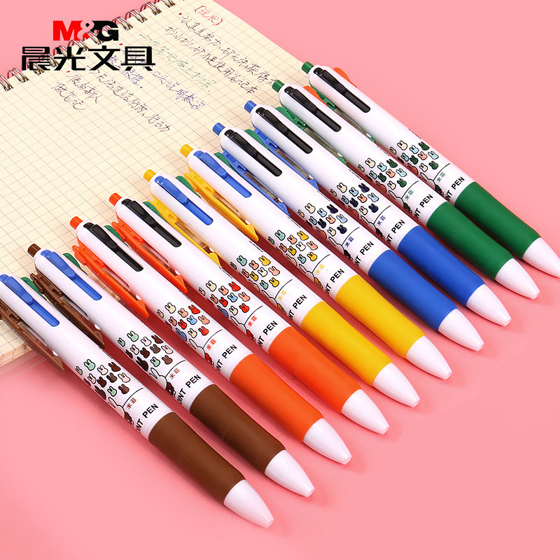 Morning light four-color ballpoint pen student with cartoon cute mifi colored round pearl oil pen 0-5mm multicoloured pen special black red blue green multifunction press-style office pen 0 7mm