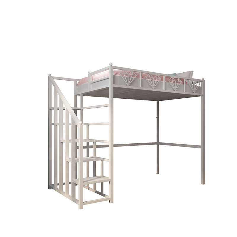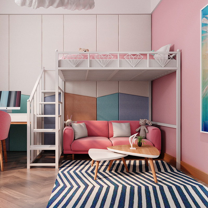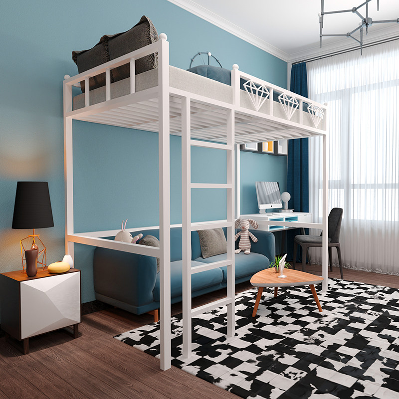 Elevated bed linen upper floor net red iron art bed iron frame bed provincial space bedroom small family type building loft bed with high and low bed iron bed-Taobao