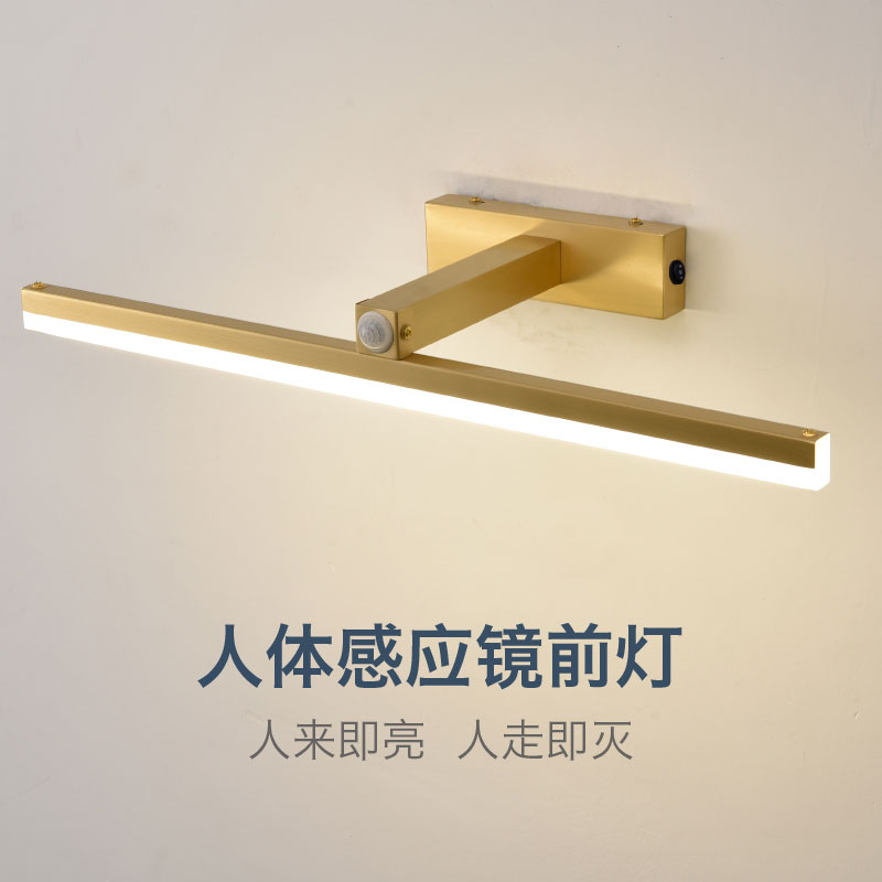 Mirror front light make-up room led free of punch Nordic minimalist full copper body automatic induction switch bathroom mirror cabinet lamp