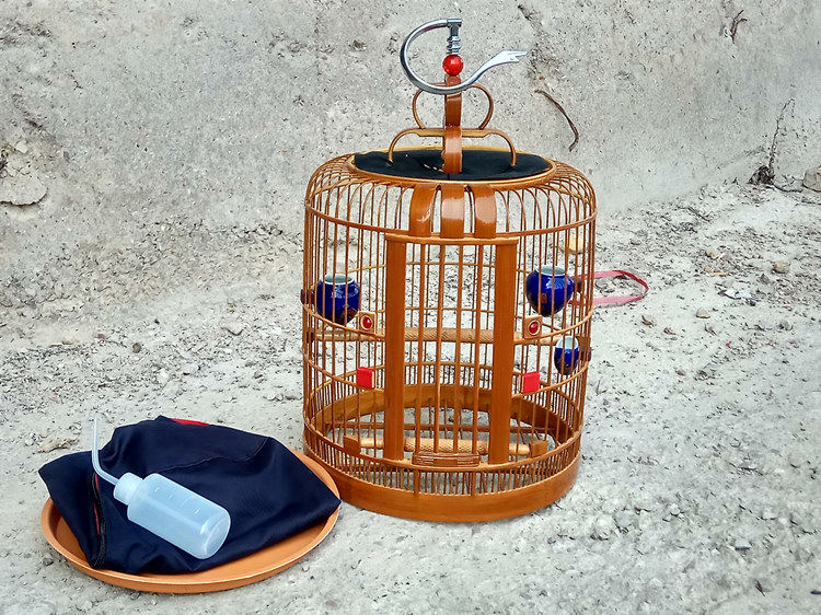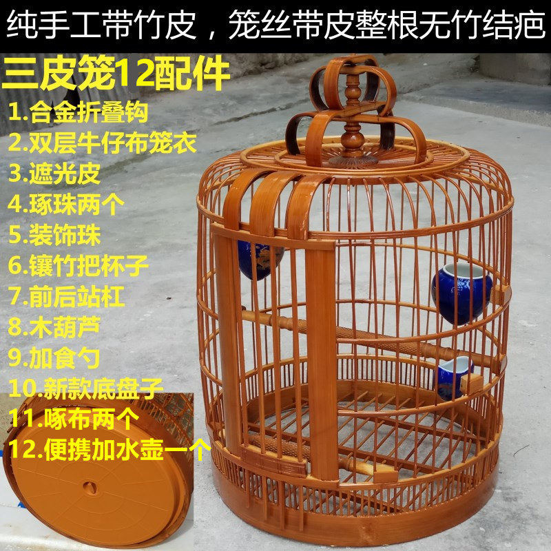 Carey cage old bamboo three-skin cage Thrush bird bird cage full set of 12 accessories is not Guangxi cage and Yunnan cage