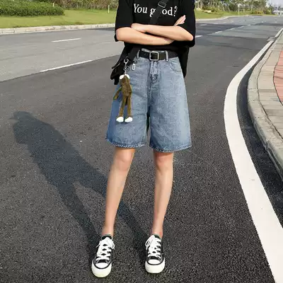 High-waisted shorts five-point jeans women's summer 2021 New loose straight tube Hong Kong flavor slim Joker pants five-point pants