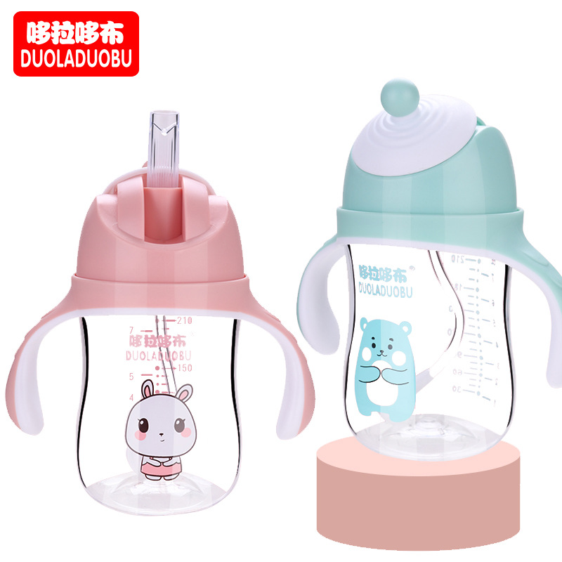 240ML ultra-wide mouth learning drinking cup children's straw cup baby with handle water cup training cup anti-choking and leak-proof