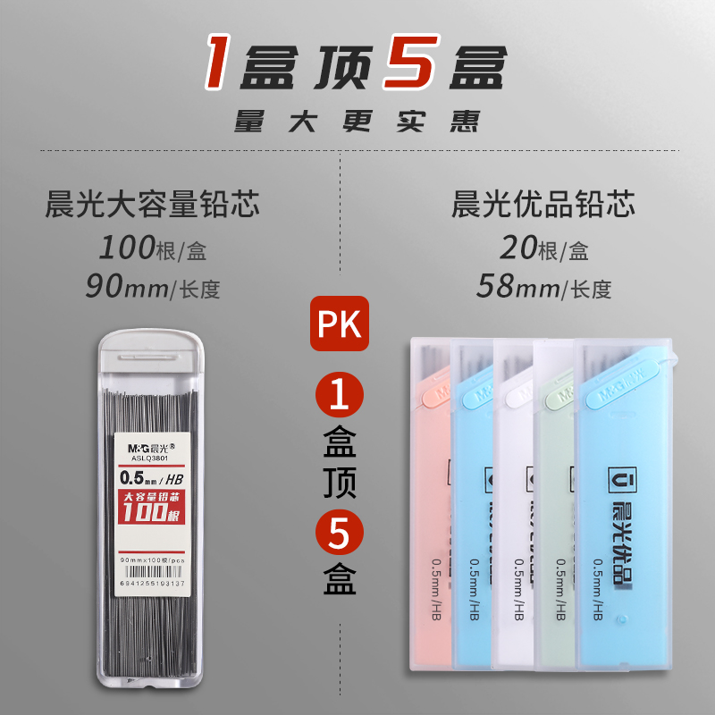 Morning lead 2B HB pencil hardness pencil lead students stationery not easy to break prizes lead 0 5mm 0 7mm refill Black activity lead-free virus mian xue interchangeable cartridge