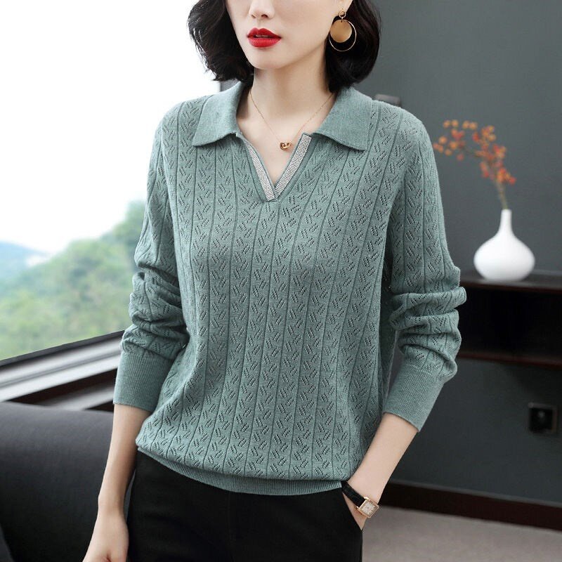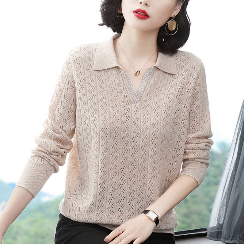Knitwear women's 2019 new ladies thin section loose middle-aged early autumn long-sleeved knitted sweater mother lapel sweater