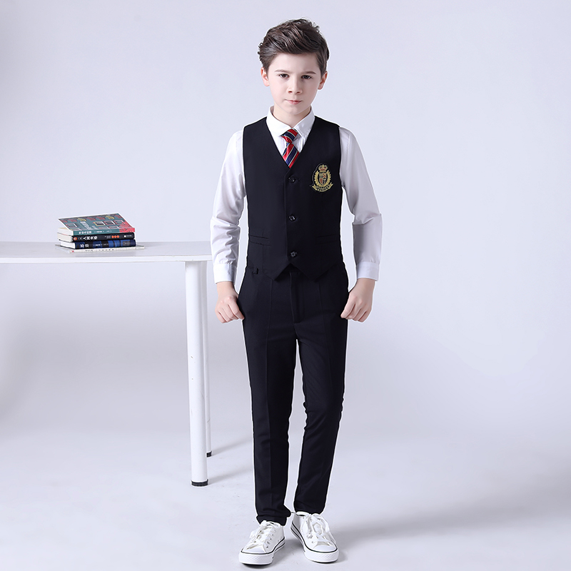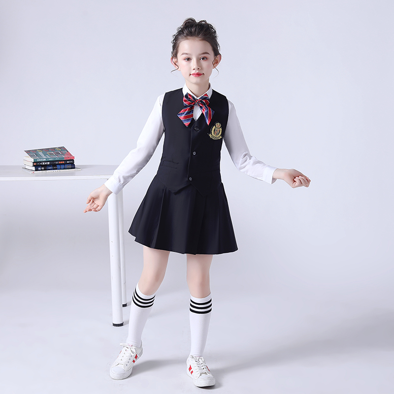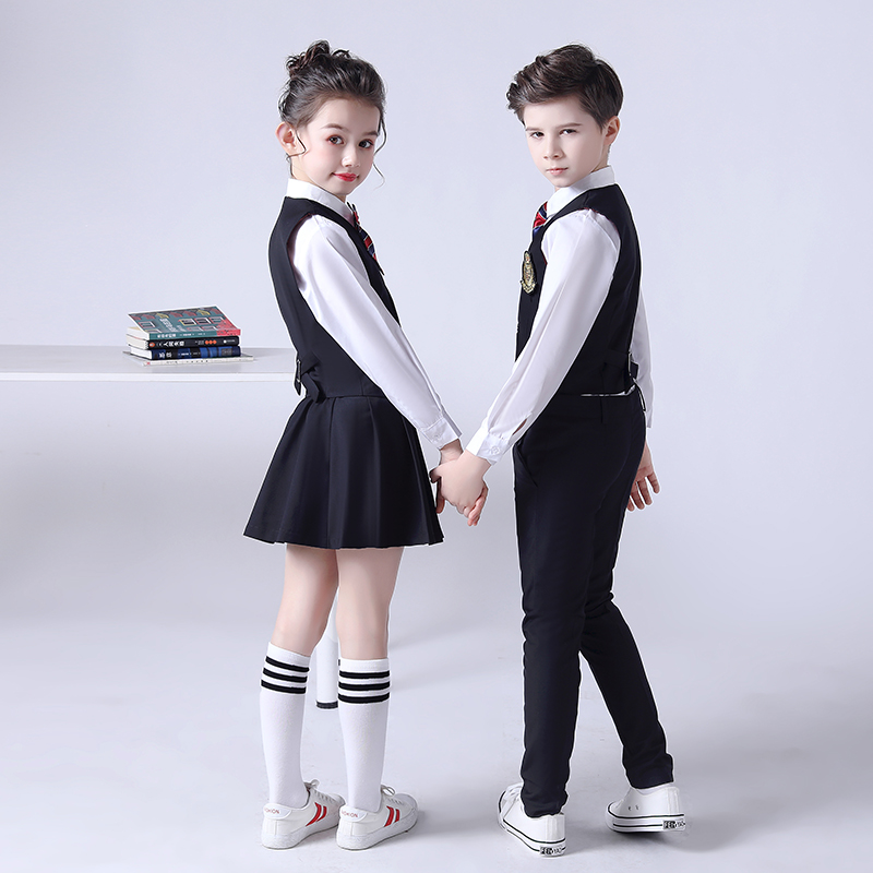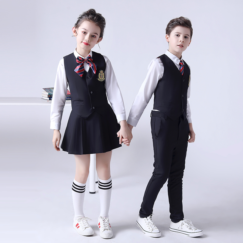 Men's black uniform 5-piece vests pants tie badge medium stockings male black uniform 6-piece vests pants white long-sleeved shirts tie badge white medium stockings female