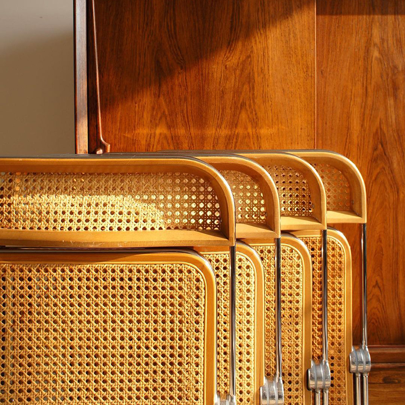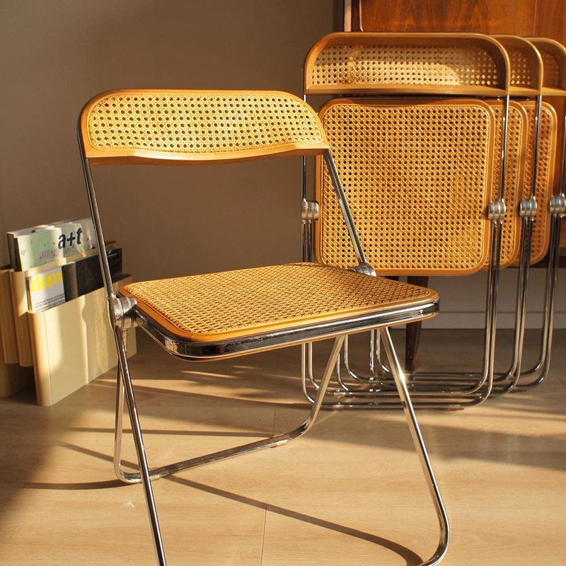 Nordic simple folding chair light luxury retro wooden rattan back chair home medieval iron metal dining chair