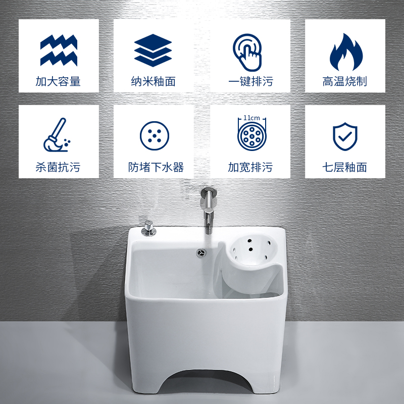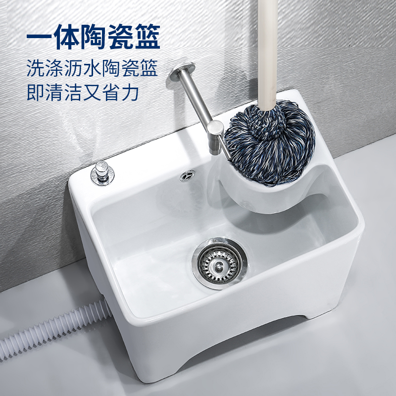 High foot wash mop pool home balcony bathroom mop pool side row with ceramic drain basket small tank pool