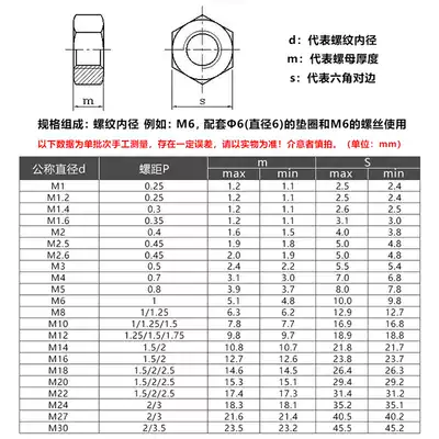 304 stainless steel nut hexagon nut gasket spring pad M1 6 M2M3M4M5M6M8M10M12M16M20