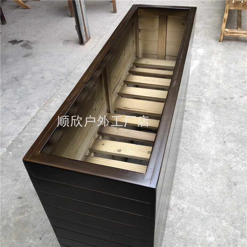 Custom-made anti-corrosion wood flower box flower bed square greening planting box partition combination tree pot carbonized outdoor flower trough square