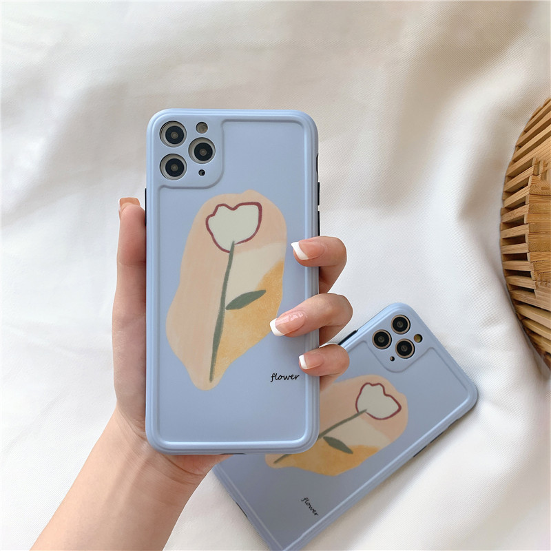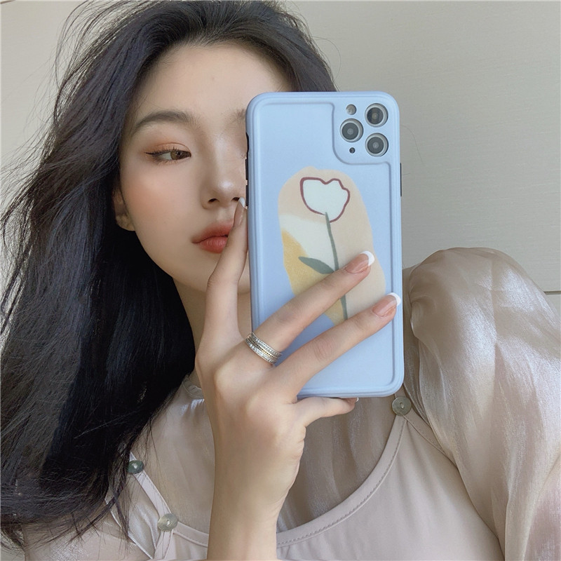Tulip illustrator applies 11Pro Max Apple X XS XR mobile phone protection shell iPhone7p female 8plus sleeve SE 9 net red with full package border fall camera