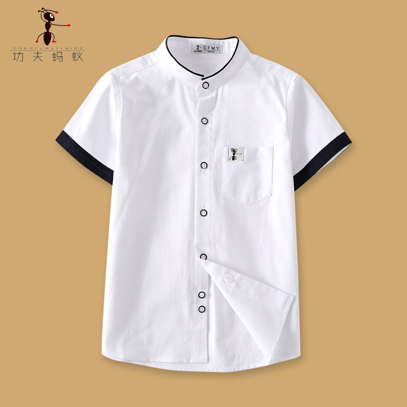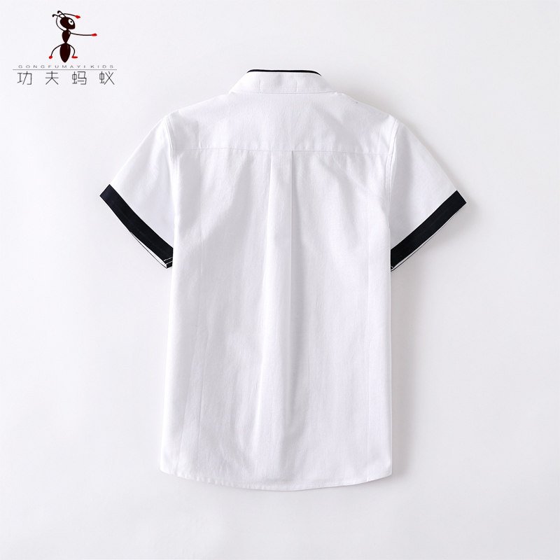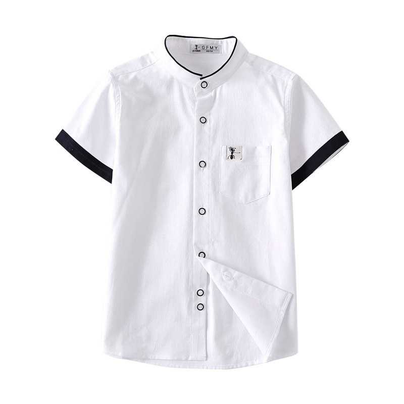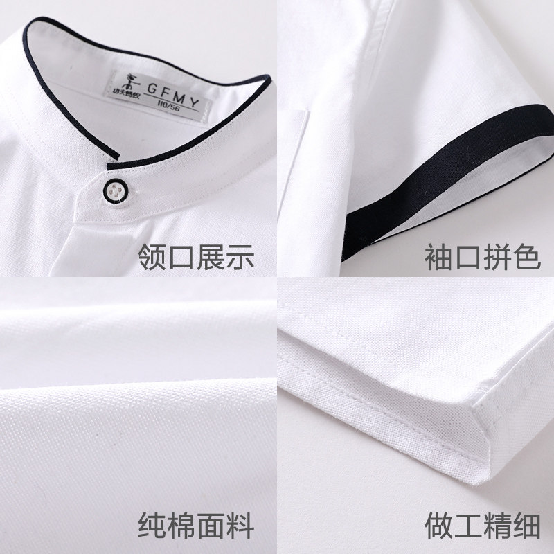 2021 Summer new children Black and white Short sleeves Shirt Tide College Wind Slim CUHK Boy Round Collar Shirt 5202