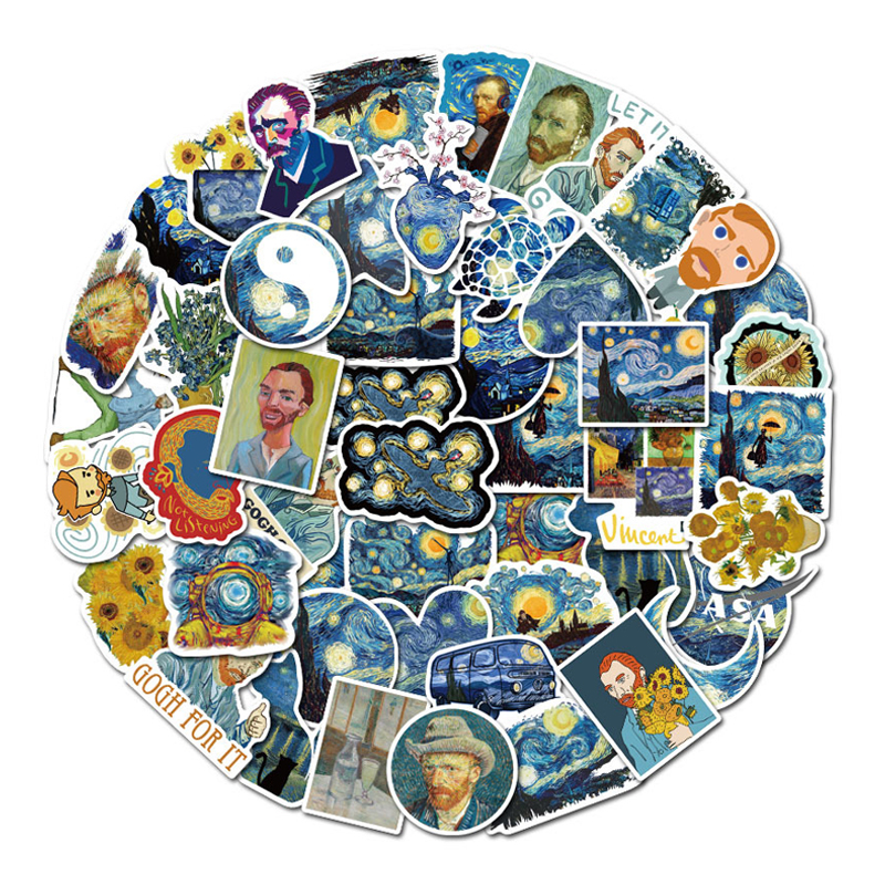Van Gogh stickers sunflower art oil painting starry sky stickers computer skateboard decorative wall stickers waterproof luggage stickers