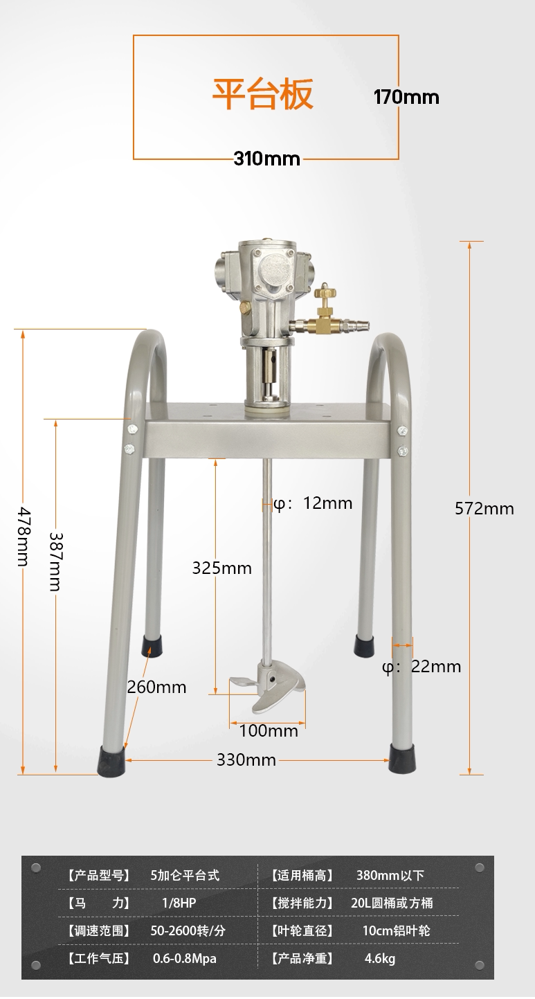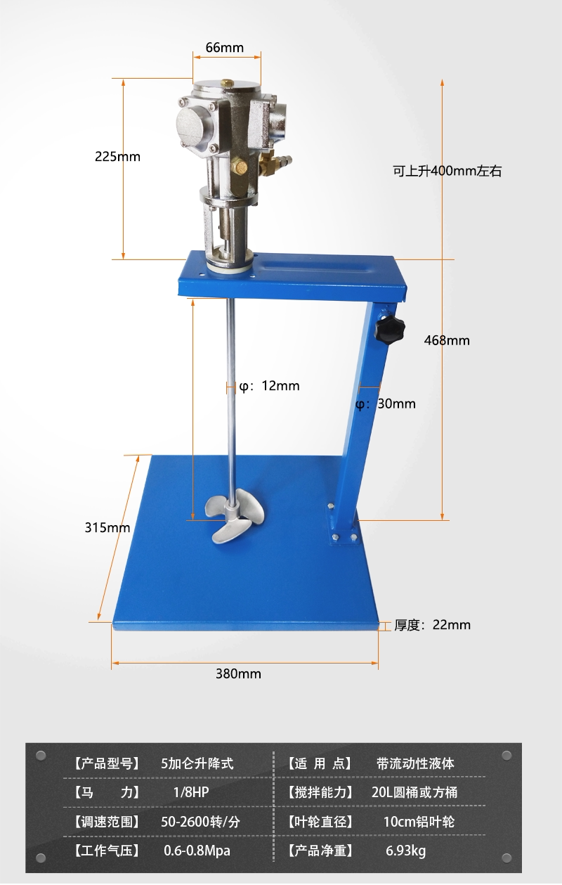 Jubai JUBOO 5 Gallon Pneumatic Mixer Lift Paint Paint Mixer Diaphragm Pump Stand