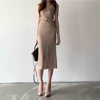 South Korea summer 2021 new ice silk knitted skirt suit female western style thin temperament royal sister style two-piece suit