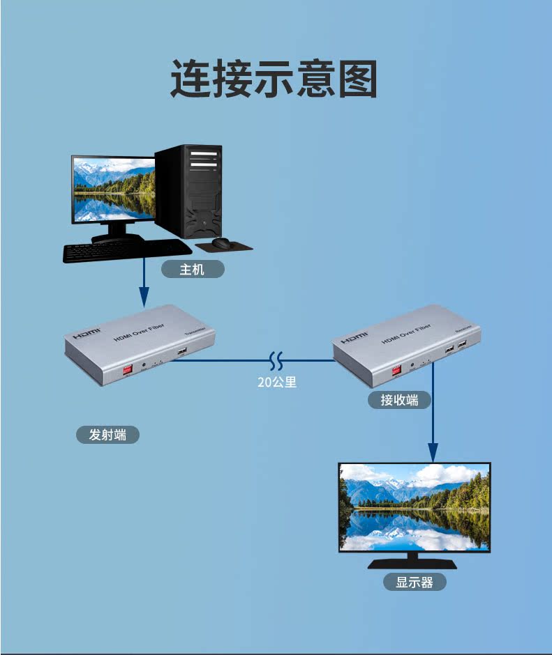 20 km optical transceiver HDMI fiber extender fiber SC connector IR one-way echo support kvm key rat