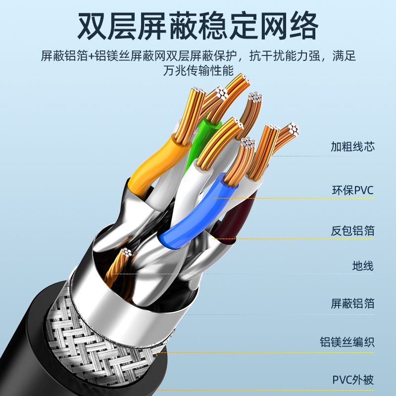 Category 7 white round wire (gaming grade-10G network cable)double shielding★Professional grade