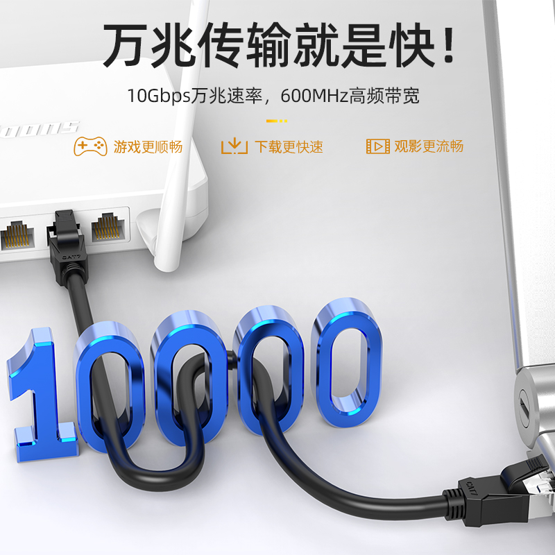 Class 7 network cable 10 Gigabit high-speed cat7 Class 6 gigabit home network jumper computer shield finished flat 5 meters
