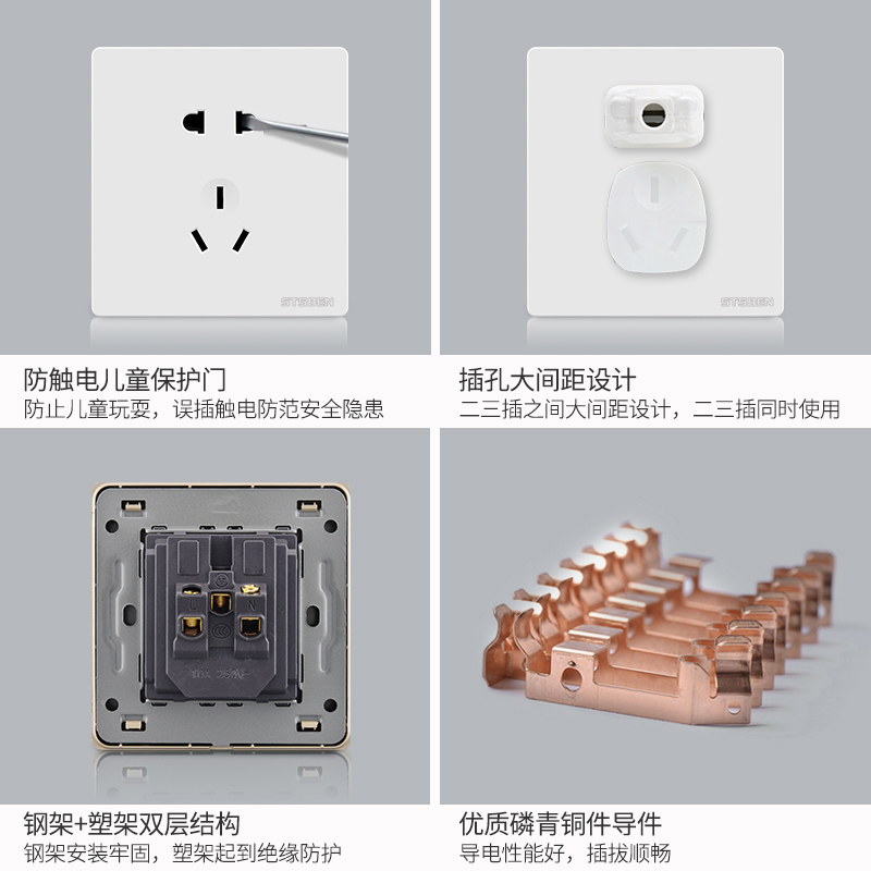 Famous open electrical switch socket large board household concealed one open double cut switch five-hole socket with switch panel