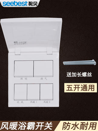 Shibei bath heater switch five-open flip universal bathroom waterproof five-in-one dressing room heater switch panel 86
