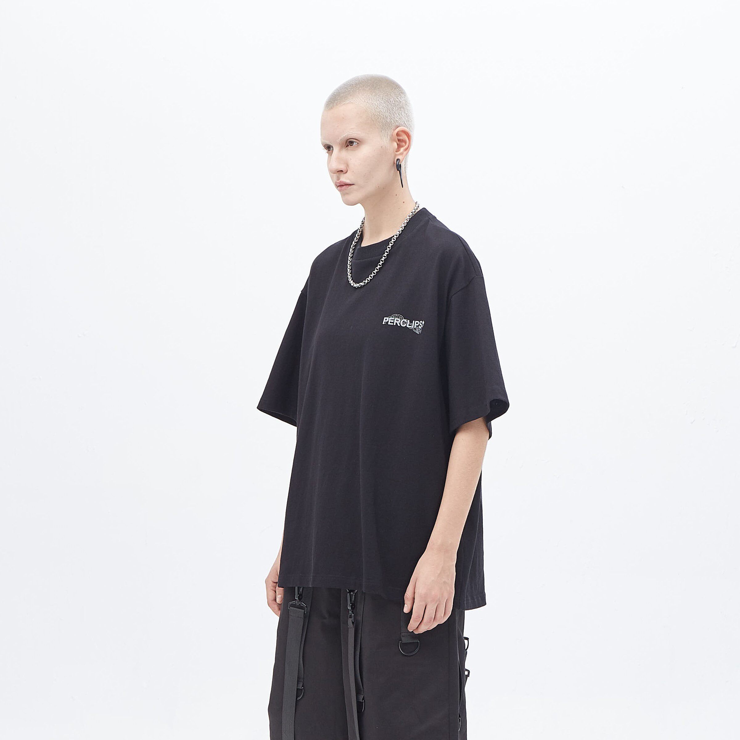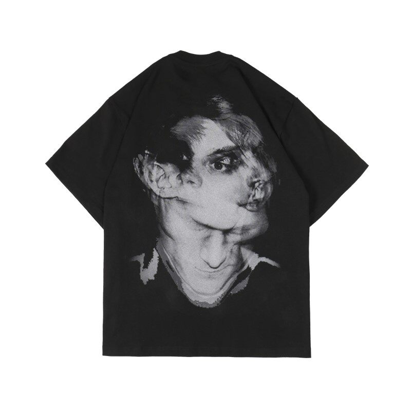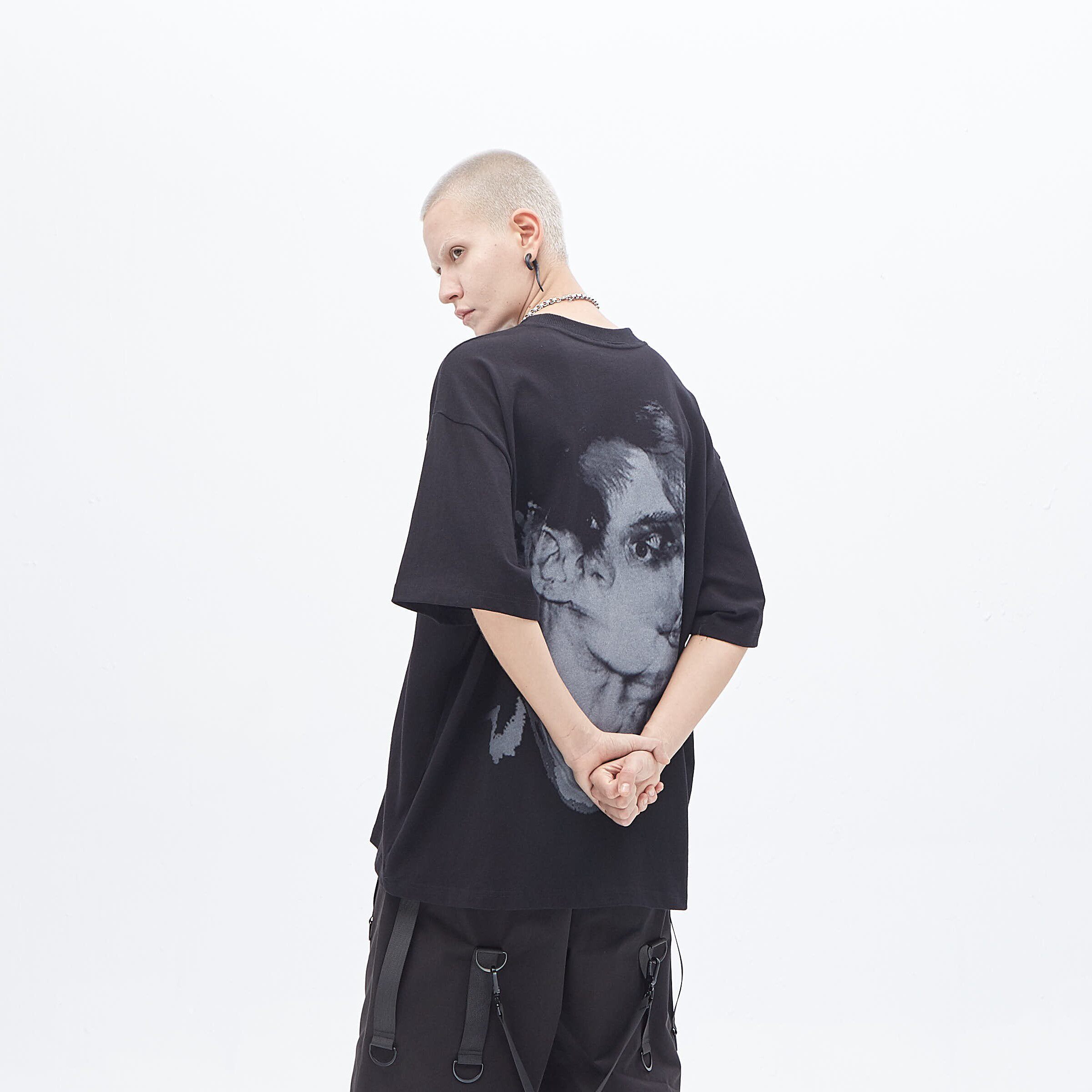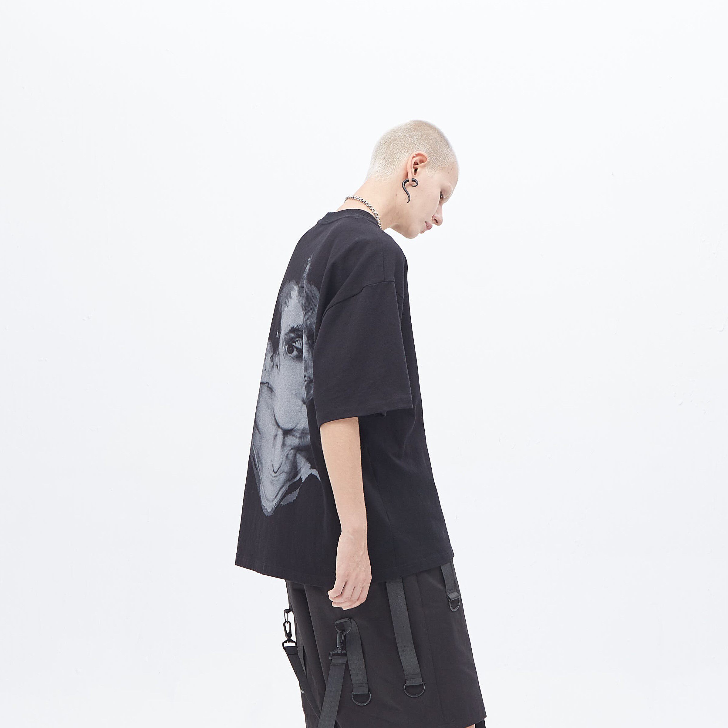 PCLP Fuzzy Portrait Short Sleeve National Tide Brand Back Print Loose Black Cotton Round Neck Half Sleeve T-Shirt Men