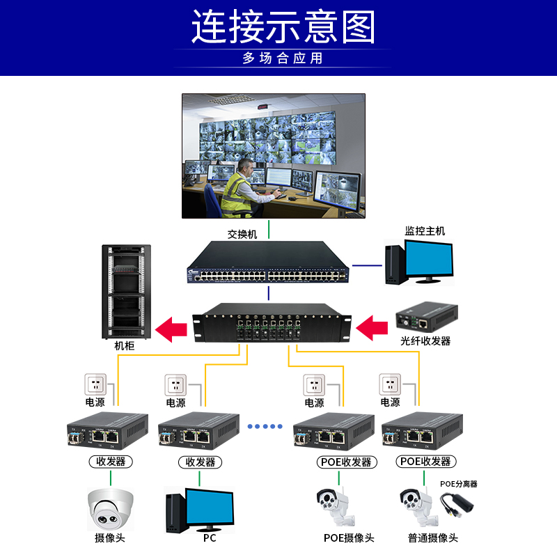 Sealed SFP port Gigabit 1 optical 2 electrical optical fiber transceiver Hot-swappable lc support POE power supply 1000M dual network port photoelectric converter 2-way high-definition network optical end machine Optical fiber switch