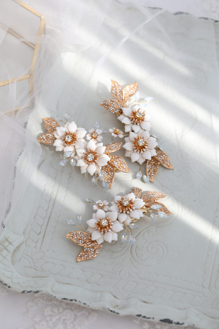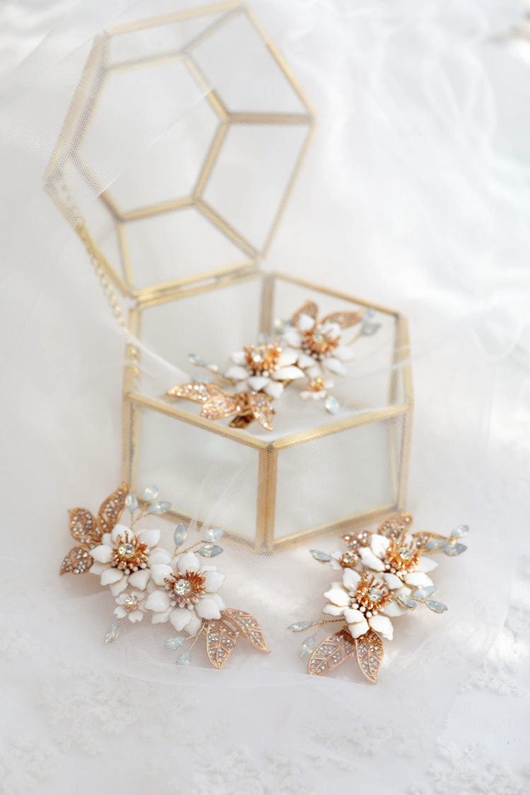 Original Homemade Temperamental Flowers Bridal Head Accessories Hair Clip Inlaid Drilling Gold Leaf Wedding Dress With Makeup Photo Hair Accessories Hair Accessories