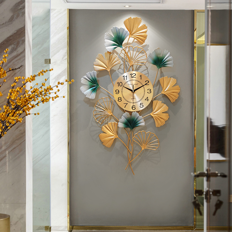Love makeup Ginkgo Leaf Hanging clock Living room Creative fashion mute clock hanging wall Home light extravagant personality minimalist wind clock-Taobao
