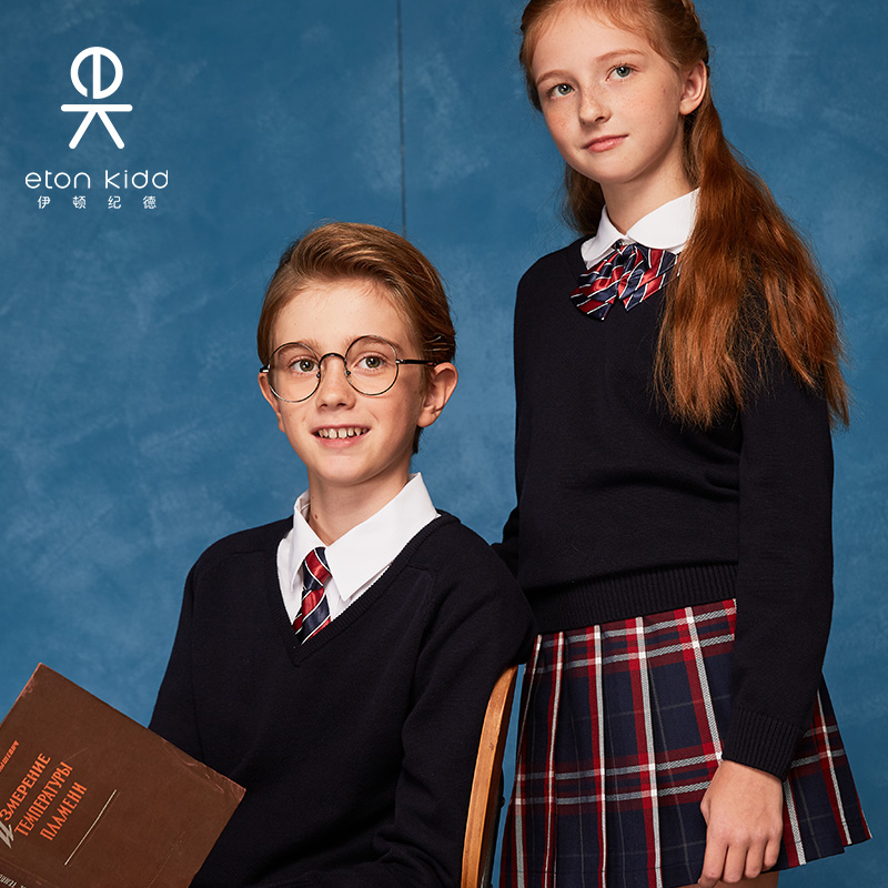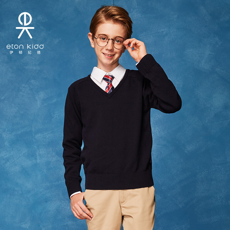 Eaton Gide children's cotton pullover basic V-neck sweater boys and girls long-sleeved sweater 17M022