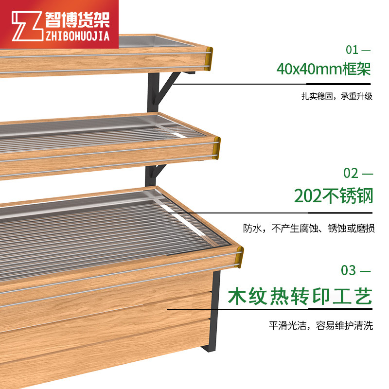 Qian Dama vegetable shelf display shelf fresh fruit rack supermarket fruit and vegetable rack against the wall stainless steel multi-layer single double sided
