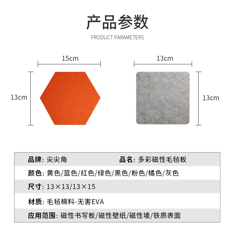 Sharp-pointed magnetic felt board home decoration office culture photo wall decoration magnetic suction hexagonal square color message board thickened cotton environmental protection EVA creative magnet stickers creative gifts