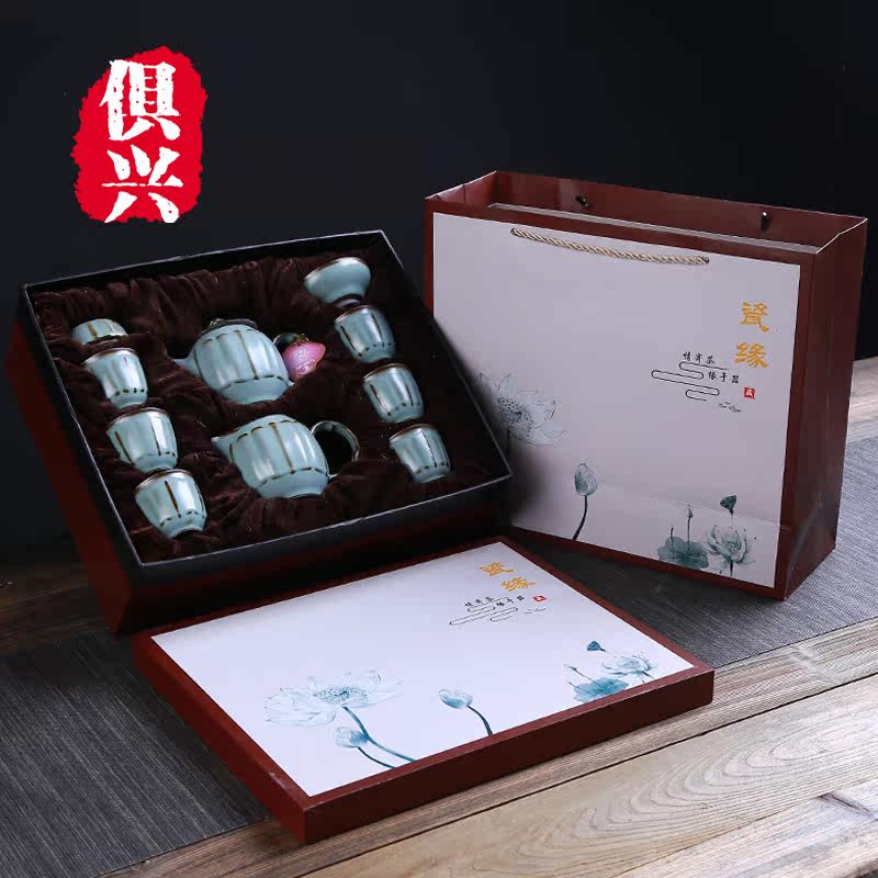 Iron Tire Ru Kiln Ceramics Upscale Utilityutia Teapot teapot set for home open sheet Nourishing Ru Porcelain Tea Set Business Gift