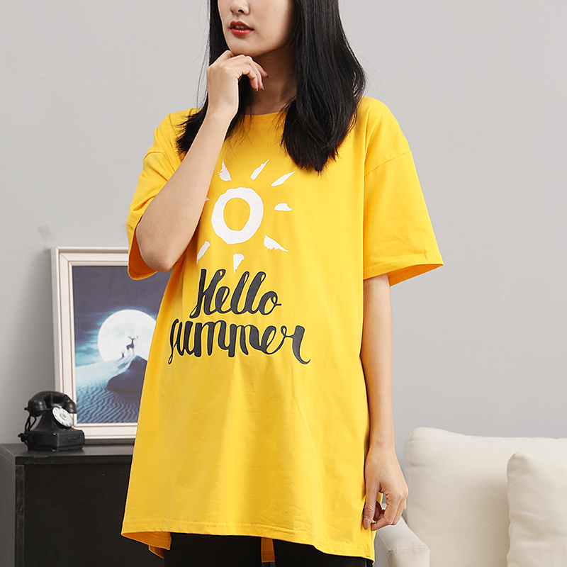 Fat plus size maternity T-shirt short-sleeved summer thin season fashion trend fat girl home maternity top loose 200 pounds