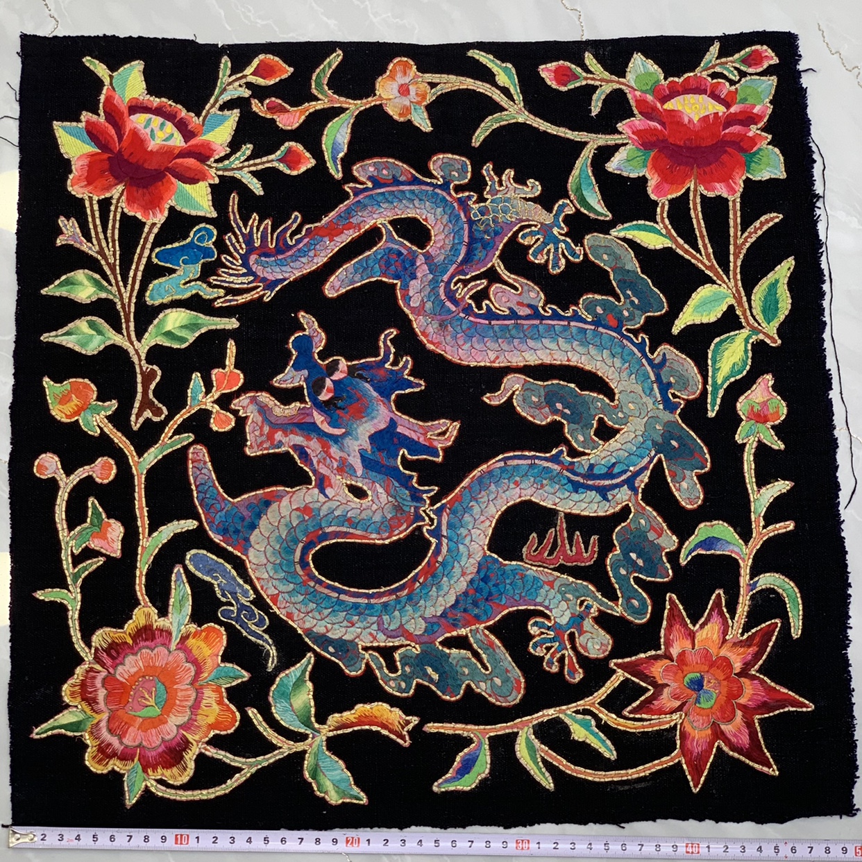 Handmade Miao embroidery boutique plate gold embroidery old embroidery plate Jin Yunlong decorative painting clothes fabric Q122 intangible cultural heritage 80% new