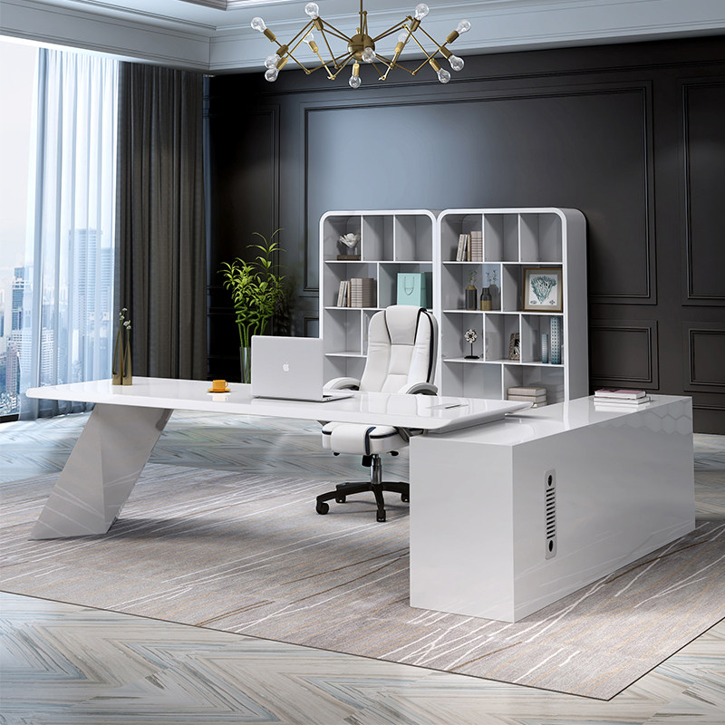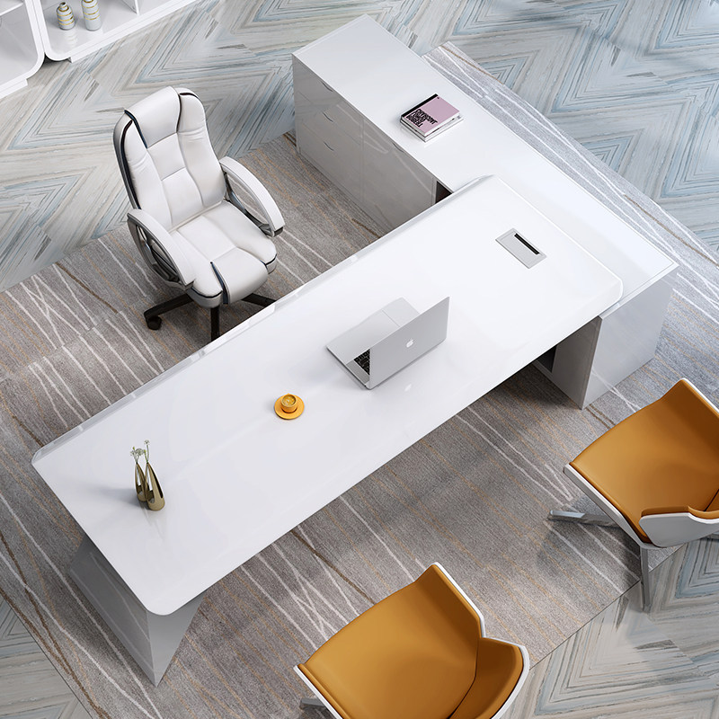 Text Group New Baking Varnish White Boss Table President Table Fashion Manager Table Fashion Manager Table Modern Minimalist Office Furniture