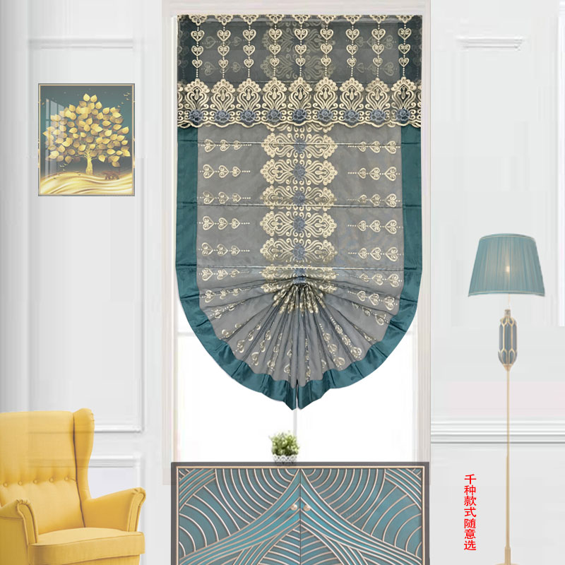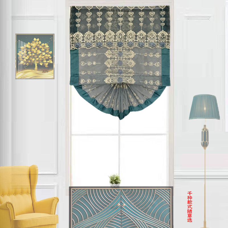 Roman curtain curtain Master bedroom warm fan-shaped high-grade shading free hole shaking sound net red curtain American dining room curtain
