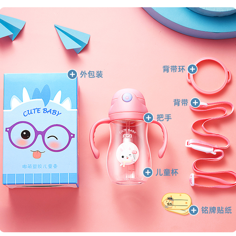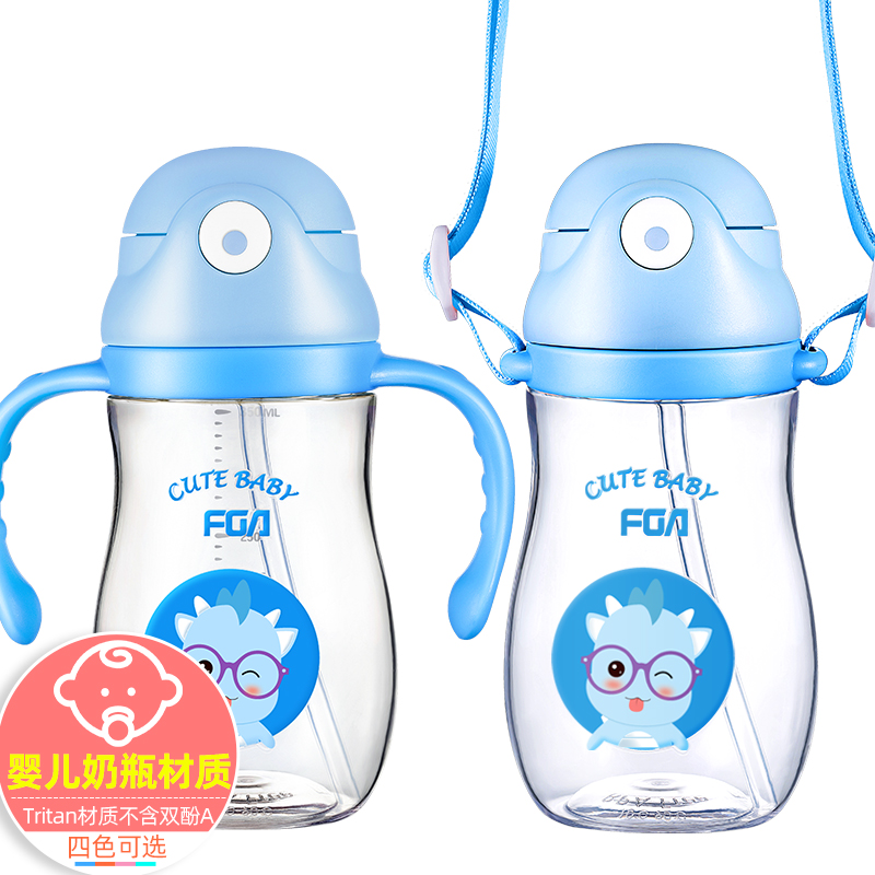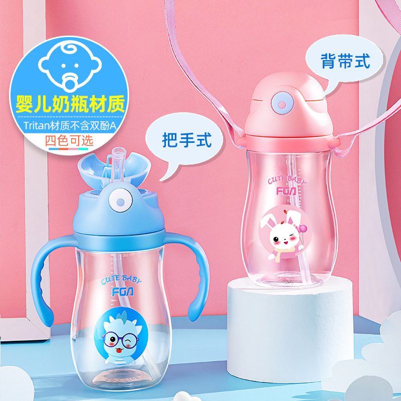 Fuguang Children's straw cup with scale Milk cup tritan water glass Summer kindergarten Elementary school pupil's cup anti-fall