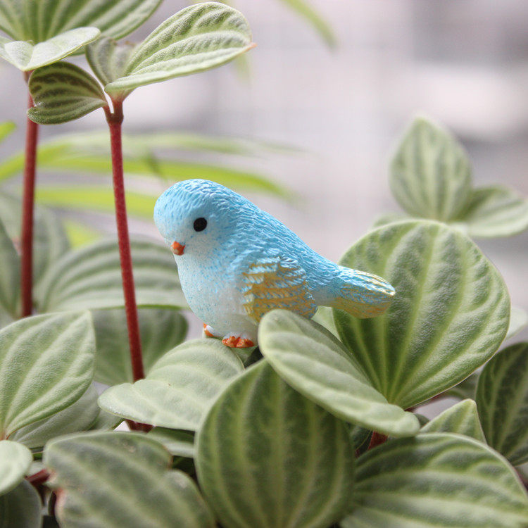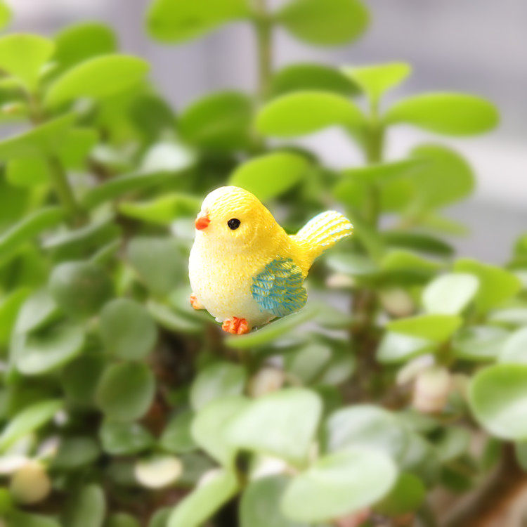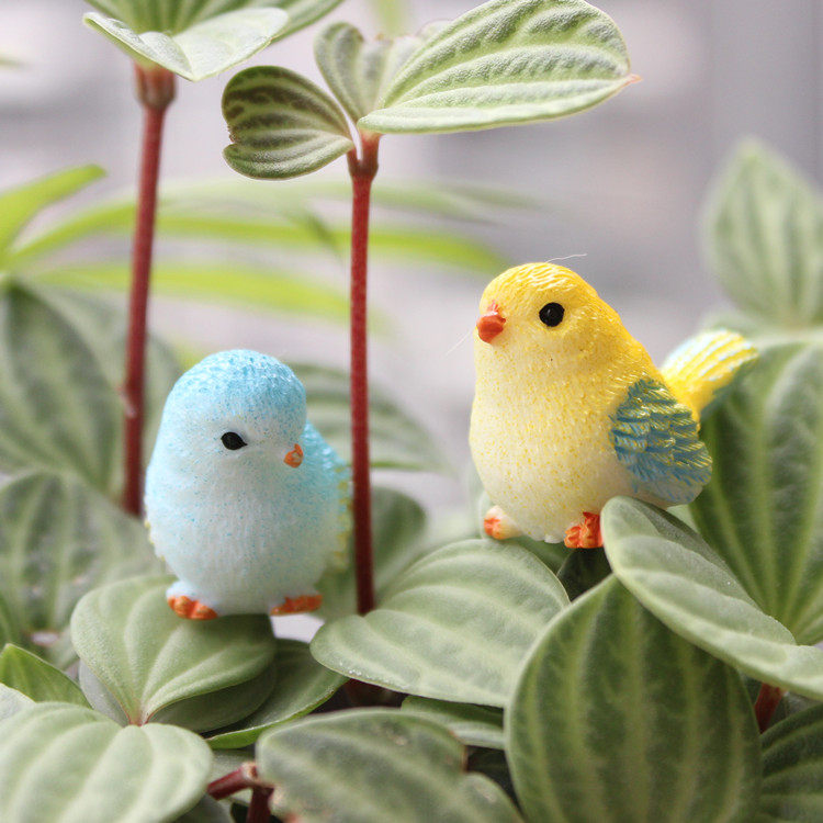 Simulation of the small bird Macaw Blue Parrot Yellow Warbler Bird Flower Colorful Bird Succulent Bonsai Ornament Micro Landscape Animal Ornament