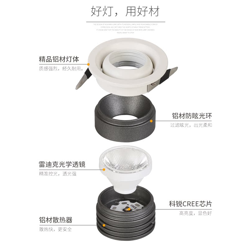 LED wine cabinet background wall without owner embedded bull's eye 3 watts 5 watts 7 watts opening 35mm45mm55mm75mm spotlight