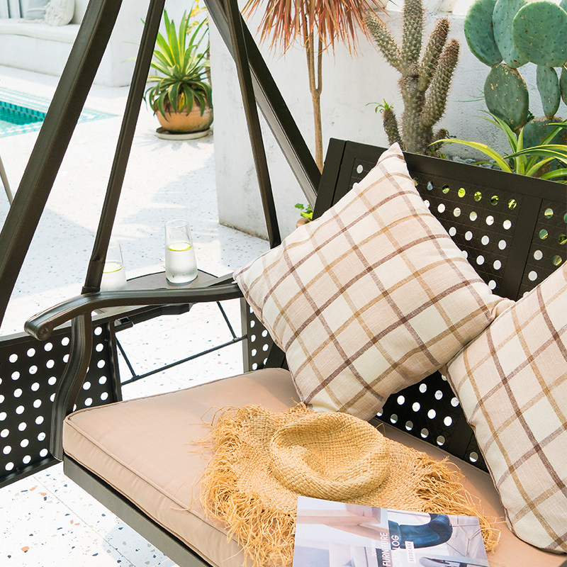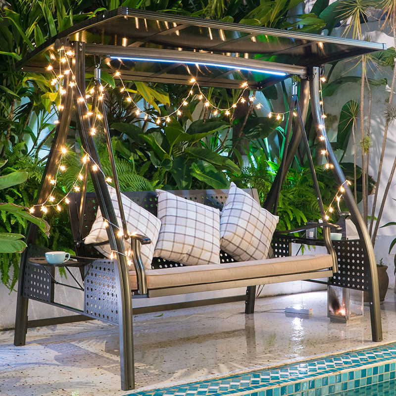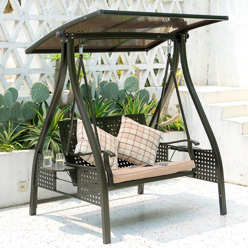 Alpine aluminum swing-double with lamp Alpine aluminum swing-three-person with lamp Korean version of the sun shed swing-double with lamp Cappuccino carbon steel swing-double with lamp