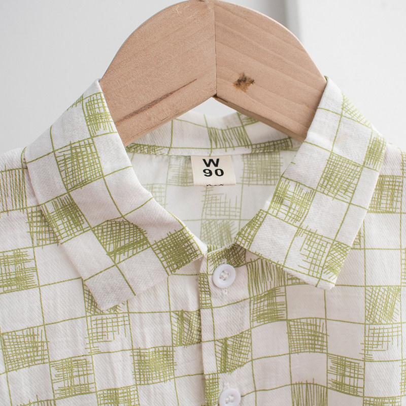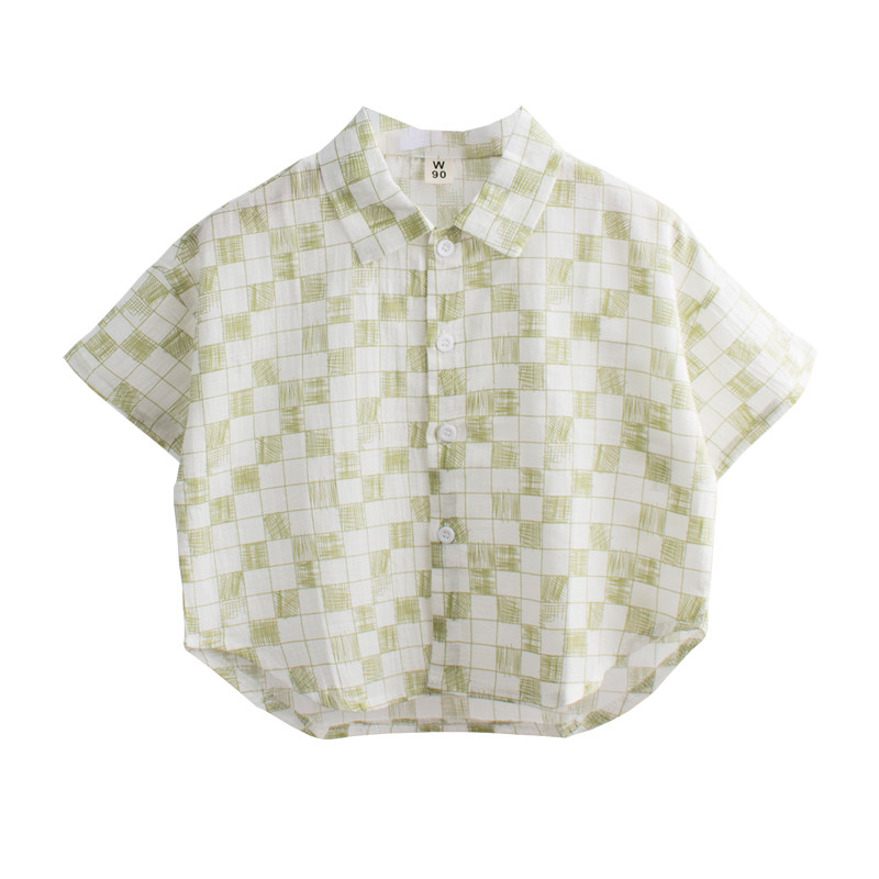 Very light and soft boy shirt 2021 Summer Korean version slim fit jacket baby pure cotton short sleeve foreign to loose and breathable