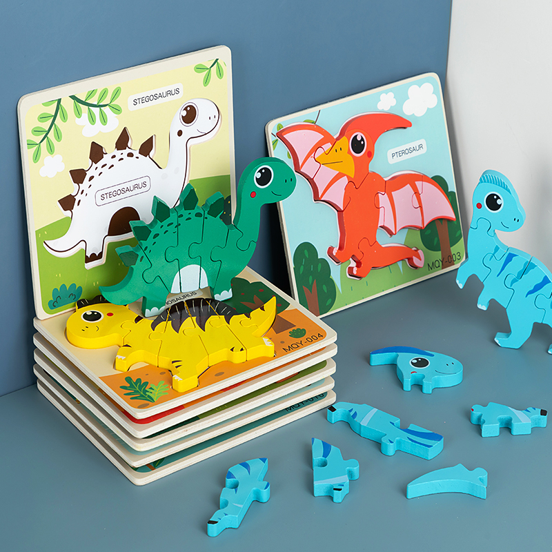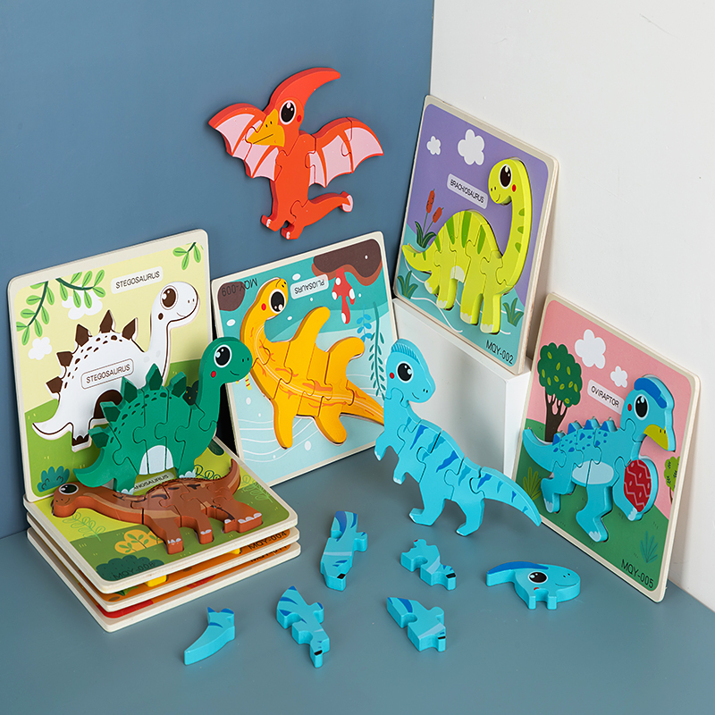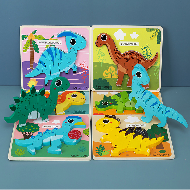 Hand Grip Dinosaur Jigsaw Puzzle Early Childhood Toys Early Toddler Child Puzzle Force Wooden assembled Cubism Jigsaw Puzzle above board