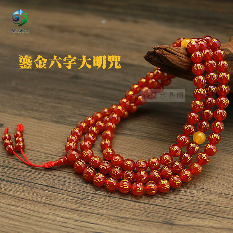 This Year of the Life Red Manau Buddha Handmade 108 Clive Gold Six Words True to the Pearl Handmade Beads Male and female