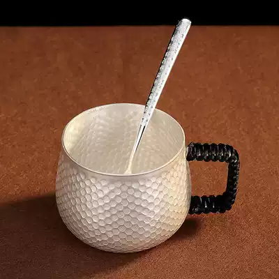Suzhou silver building handmade hammer silver cup 999 foot silver mug home practical coffee cup water cup with lid silver spoon