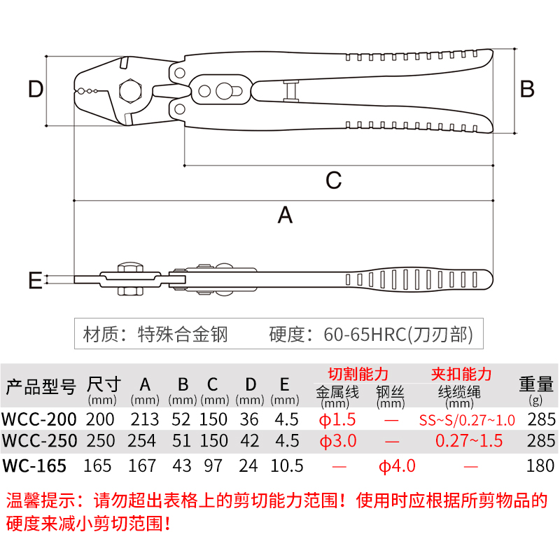 Japan imports 3 peaks 3 mt. WC165 wire clippers WCC200 250 press wire pliers tightrope wire rope wire rope wire rope shears