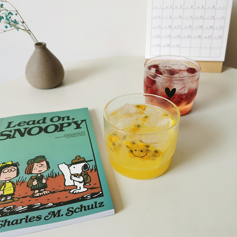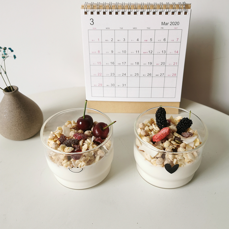 Korea ins smiling face cute minimalist light and thin heat resistant glass with handlebar water cup breakfast milk cereal cup