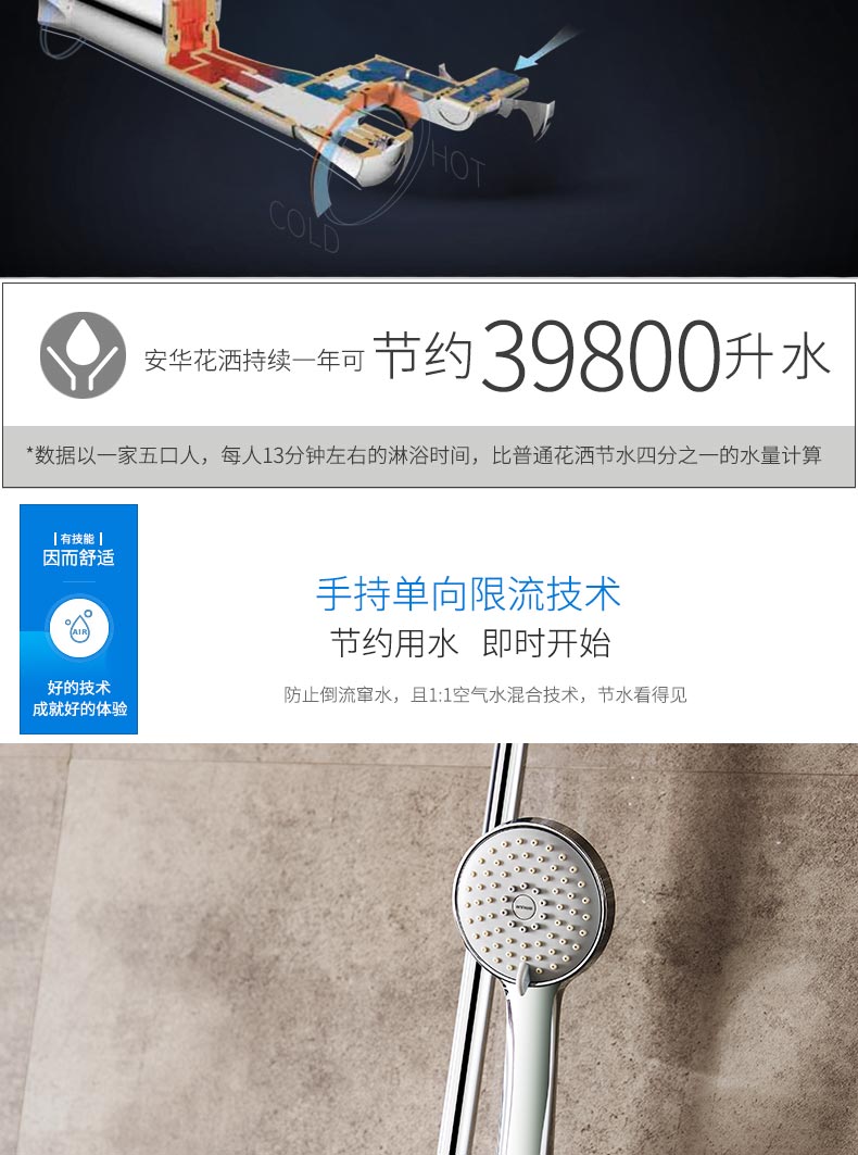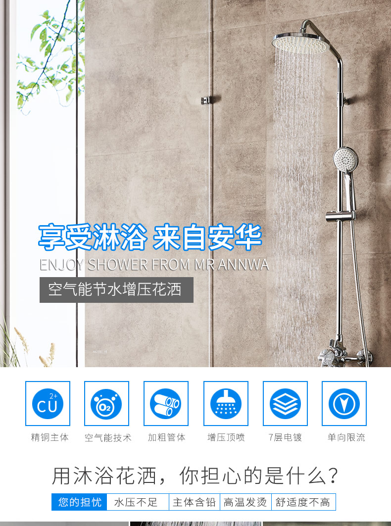 Anhua shower shower kit full copper two water outlet water saving booster style soft skin an3M1717 (subject to self-lifting)