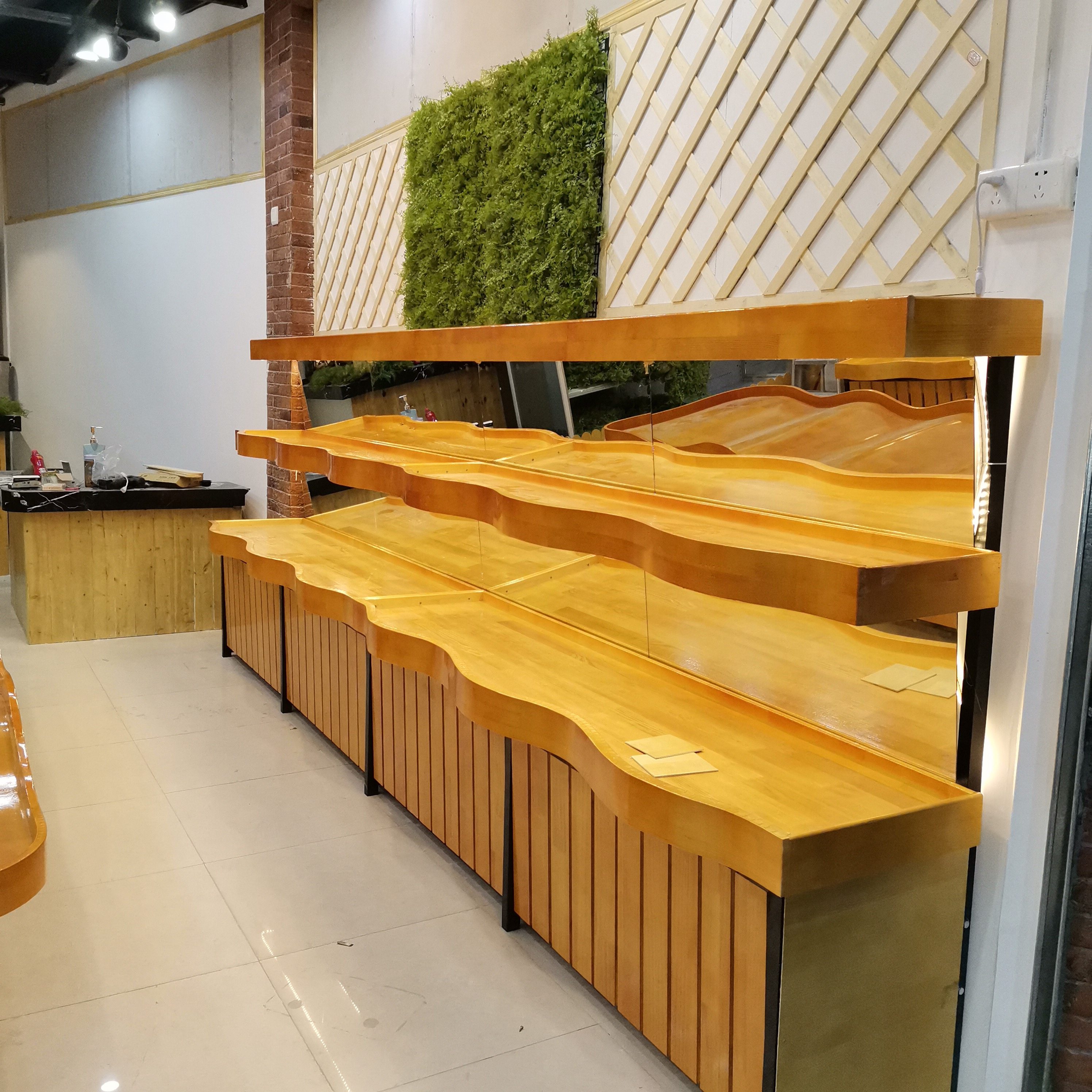Three-layer handmade waves Rice three-layer handmade straight edge Rice three-layer mechanism wave Rice three-story all-solid wood cabinet Rice wave island cabinet Rice ladder middle island cabinet Rice promotion desk Two-storey double-sided middle island cabinet Rice cash register Rice washing and cutting table with pool faucet Rice snack cabinet Meter light box Rice fence wall Rice wind curtain cabinet wrapping edge Rice style size color customization consulting customer service