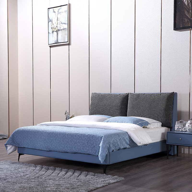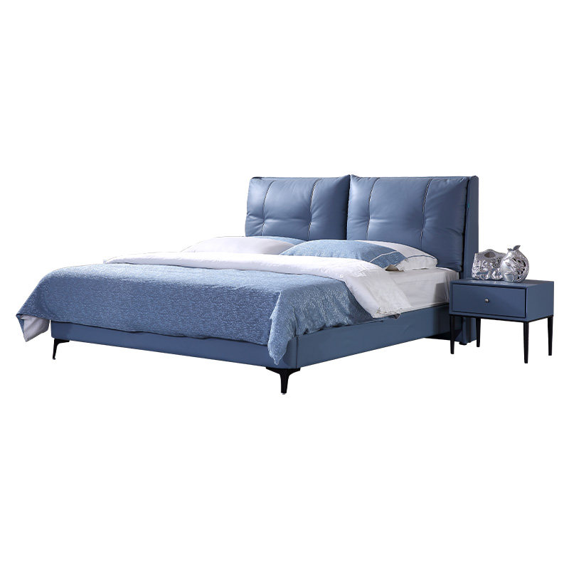 Italian light luxury leather bed leather bed